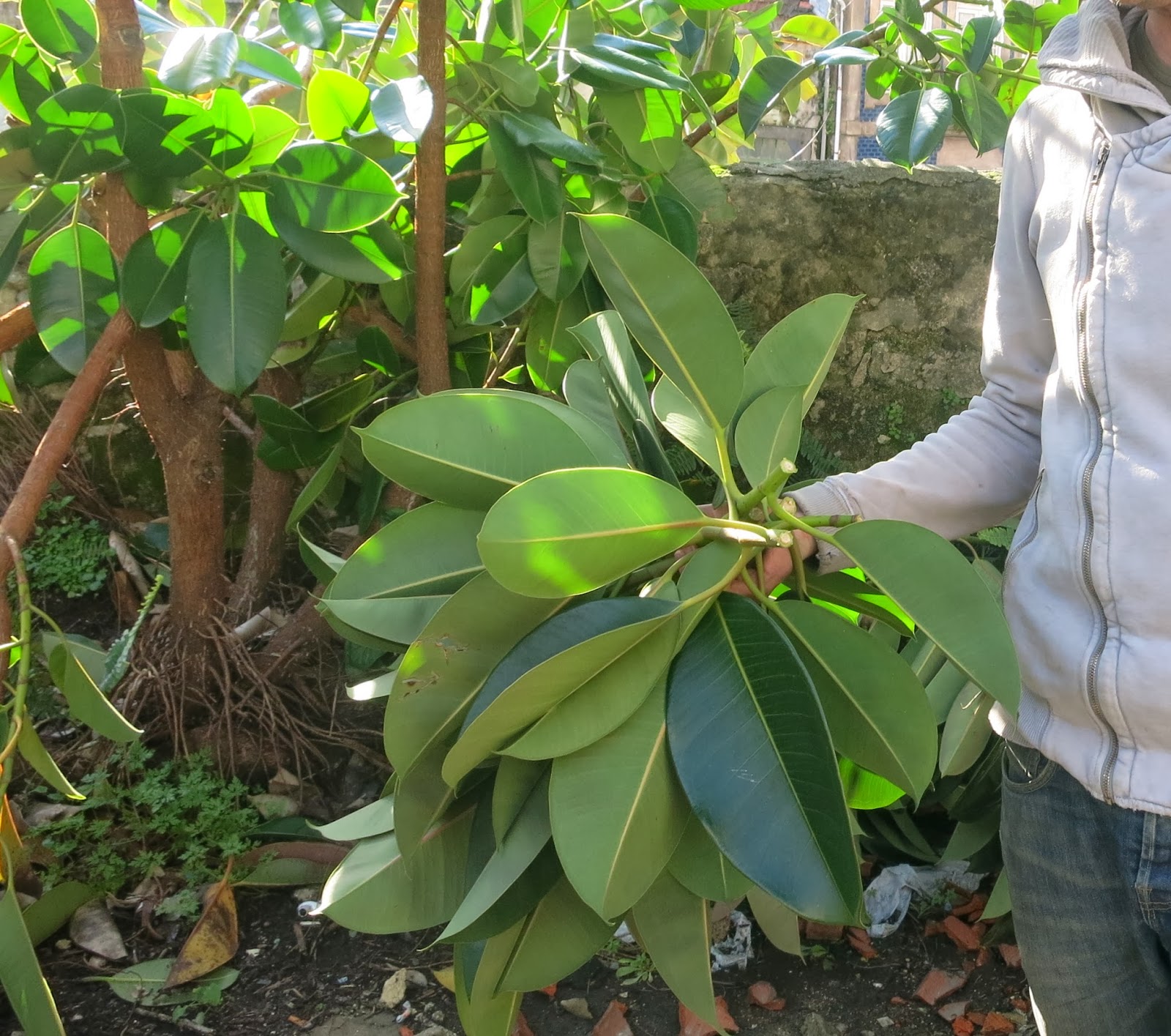 Our original goal was to keep our plant, of course his wild growth needed to be tamed, but rubber plants are really beautiful things, and he was holding down the fort long before we arrived on the scene. We even named him; 'Homeboy'. Unfortunately, city regulations set strict limits on impenetrable coverage and we are required to remove all the concrete (which had been laid illegally) under Homeboy. Hardy as he is (original gangsta' really), there is no way he will survive the process.
